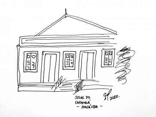 À sombra da buganvília, a casa parava o tempo como no tempo que só ela existia e tudo aquilo era um descampado. A casa restou como coisa de dois séculos passados. A data está presente: 1856. É o Solar Caxangá, Instituto Pro-Memória de Macaíba.